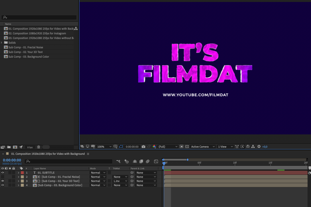 An After Effects AEP file with the 3D Rotating Text and a PDF file with instructions and information.